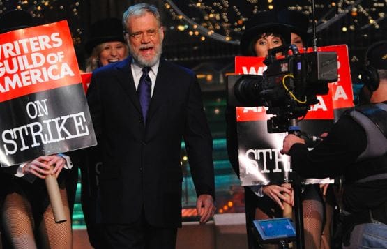 Dave, meanwhile, came back and did basically the same show he always does. There were some pro-writer touches like the kickline of dancers holding picket signs, or "Late Show" writer Bill Scheft interrupting a prop gag at the tail end of the Q&A to deliver a rant aimed at "the arrogant media moguls who've gotten so fat on our sweat-soaked toil that they can no longer fit behind their mahogany desks," but for the most part, it was "Late Show" as usual. The monologue was the standard meta-commentary about how bad the monologue is (this time punctuated by Biff coming out to ask when the writers would be coming back), and if there were great punchlines in the Top 10 list of striking writers' demands, the halting delivery by 10 of those striking writers stepped on them.