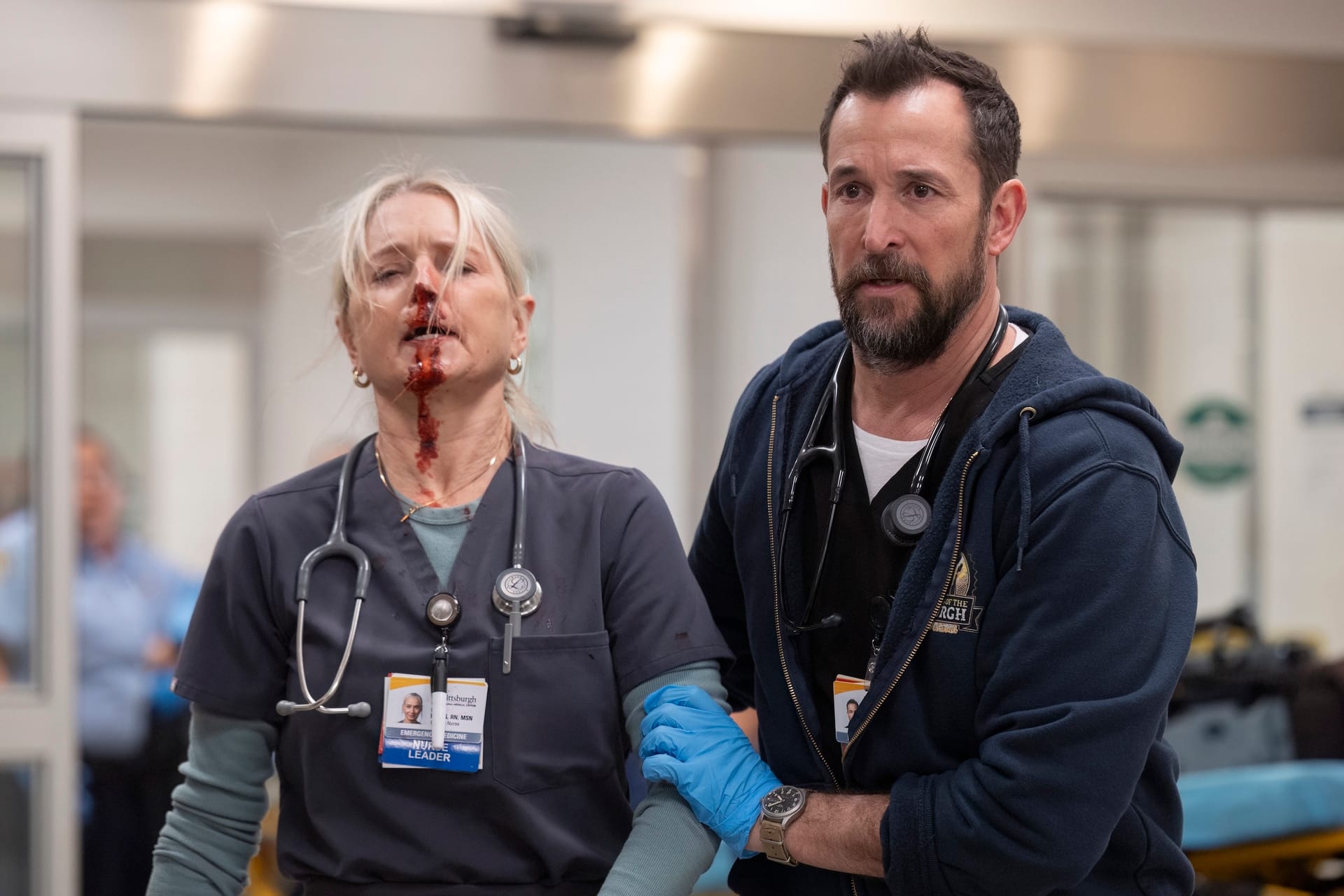 - As I’ve said previously, I think Noah Wyle’s incredible performance, and the writing of Dr. Robby, has very effectively delineated him from John Carter, despite the shared specialty. That said, it was interesting to have two different scenes this week where Wyle found himself on the opposite side of a memorable moment he played on ER. The first of these is when Robby and Langdon coach Whitaker through performing an escharotomy on the burn patient. On the second season of ER, this was a procedure that Dr. Benton tried to coach Carter (then a fourth-year med student, just like Whitaker) through after a paramedic was brought to County General with full thickness burns. Carter ultimately couldn’t get through it, and later required a pep talk from Benton, who assured him that he still had what it took to be a surgeon. The second is the episode-ending confrontation with Langdon about the stolen pills. Carter became addicted to painkillers, and began stealing them from the ER, after he was stabbed in Season Six. In that case, the intervention was a lot calmer and came from a place of love and affection from Benton and the others — even after Carter took a swing at Benton at one point. Here, though, Robby is just furious and betrayed that his protege would do this, and that he wasn’t paying close enough attention to catch it. A great scene, but one that brought on ER flashbacks more than most of The Pitt has to date.