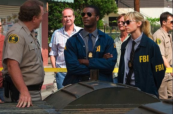 Still, the idea of doing a "Leverage" version of the old staple -- what happens when thieves are stuck in the bank with the robbers? -- wasn't a bad one, and it allowed Hardison, my favorite character by a long stretch, an opportunity to shine. But the denouement didn't make any sense -- Wouldn't the local cops notice that one of the FBI agents was now dressed like a hostage? And how was Parker simultaneously posing as a hostage and driving Hardison away as an FBI agent? And even if the other hostages all agree to screw the evil judge, won't their stories contradict enough to prevent a conviction? -- and I'm really starting to think that including Elliot in the mix was a poor idea.