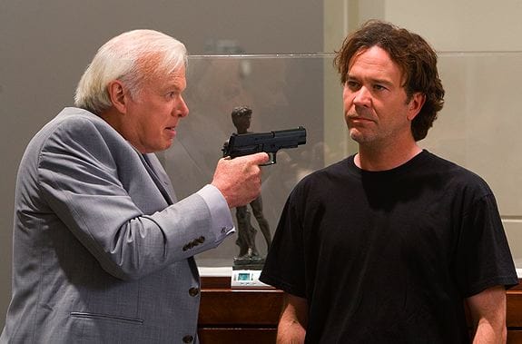 I would call "The First David Job" the more satisfying half of this two-part finale, simply because the ideas of Sterling setting up a Bizarro World version of Leverage, and of our heroes having to reverse roles to save the day, was more clever than anything either side pulled off last night. Still, it was fun to watch Kevin Tighe's panic level build throughout the hour -- that's one of the staples of the heroic con artist genre, made especially pleasurable when you have a glowering wonder of an actor like Tighe playing those notes -- and to see Nate's ex-wife more thoroughly integrated into the team.