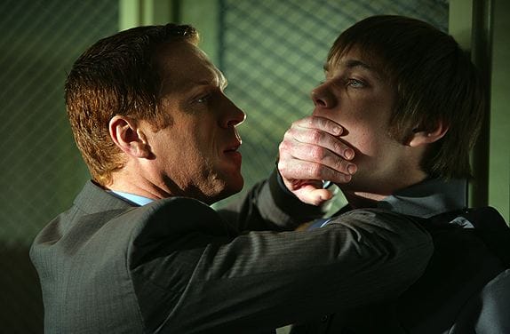 Three superb moments: Crews tries to silence Nate the poseur, realizing how close he is to starting a riot; Charlie and Ted putting on their hard prison faces to scare the bad professor into showing them the hidden footage; and, especially, Crews sitting down with the killer to prepare him for the rest of his life ("The first three years will be the hardest"). Damian Lewis is always terrific, but the writing really played to his strengths in those moments.