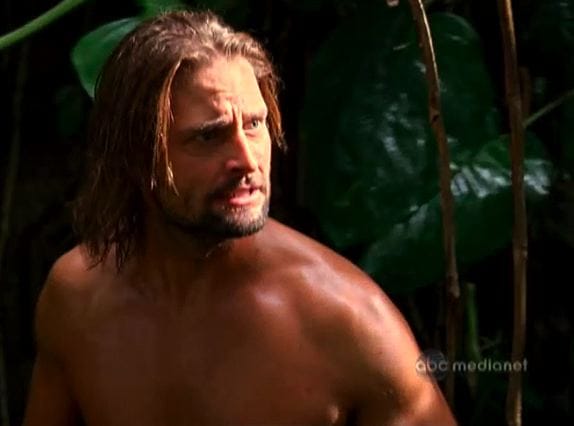 Sawyer's stuck on the island as it skips from era to era (or as he skips from era to era, or however you want to parse it), but he's also trying to process what he thinks is the death of Kate and Hurley and his other friends -- and maybe, though it's never said outright, the guilt that if he hadn't jumped out of the helicopter ("for her"), it might have gone in the ocean (where they could have swam away) instead of landing on the soon-to-explode freighter. Sawyer was pretty marginalized last season, but as Sawyer tries to deal with all the time jumps and his own grief, Josh Holloway does an outstanding job of reminding us why he was such a vital character from the start, and of making Sawyer's anguish clear well before he comes right out and says it to Dan.