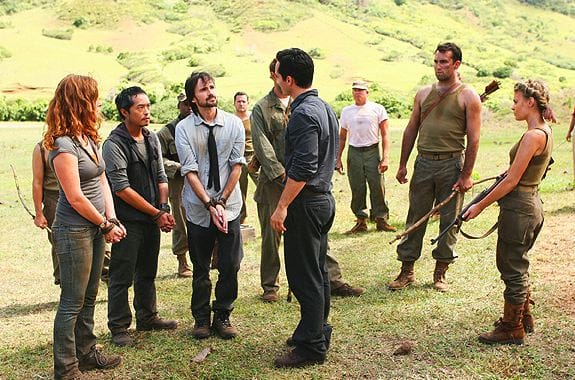 • Sawyer and Miles would seem to be dead even in their battle for island comedy supremacy. On Miles' side of the ledger: him immediately pointing the soldiers towards Dan when they demanded to speak to a leader, and his "That's just awesome" response to Dan's suggestion that their predicament could resolve itself in 5 minutes or 5000 years. On Sawyer's side: "Hate to bust up the 'I'm an Other, you're an Other reunion," and his brilliant double-take upon getting a look at the bomb.
