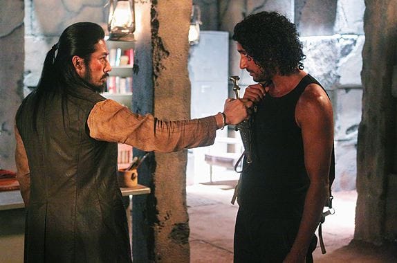 It had been a while since we got to see a good Sayid fight - the last one that strongly registers for me is the one he had with original recipe Keamy in the season four finale - and we got a real corker in his broom-handled throwdown with Dogen. And in 2004, we saw him cut through Keamy's goons(*) and then Keamy himself(**), not letting himself be fooled by the man's promises to clear Sayid's brother's debt.