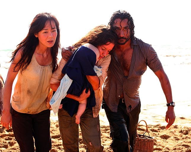 Or consider yet another edition of Sayid Jarrah: Breakdance Fighter. Seriously, they need to have Sayid beat people up with his feet at least three or four times a season, because it's always splendid, as was the entire fight sequence with Keamy and the mercs, from Kate running towards the chopper right up to Richard shooting him in the back and, like the Libyans in "Back to the Future," not thinking to check for a bulletproof vest.