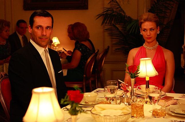 For the first couple of episodes of season two, Don hasn't seemed quite himself. If he hasn't quite reverted back to his cowardly Dick Whitman persona, he's still been adrift, and almost distressingly passive. At home, he walks on eggshells around Betty, and can't even perform sexually on Valentine's Day. At work, he barely seems to realize how Duck Phillips seems determined to cut his legs out from under him. And where before we would see him skip out of the office for trysts with Midge or Rachel, now he's reduced to sitting in art house cinemas, trying to look interested in the latest French film import.