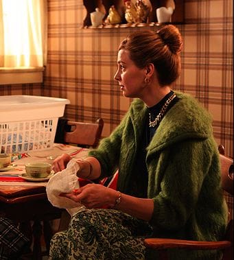 Don's equipment failure on Valentine's Day frustrates and confuses Betty, and so she decides to imitate her roommate-turned-hooker pal Juanita and see if she can't use her sexuality to get things from other men. Betty being Betty, she does it in the most childlike way possible, not thinking through the implications or dangers, and there's a moment as she stands on that dark and empty road with the mechanic and he realizes he's not actually going to get lucky in exchange for a fan belt where I began to fear for her safety. Just as Don walking with the briefcase toward his brother's room in "5G" briefly made us wonder if he had a gun in there, I worried for a moment or three if the mechanic might forcibly make Betty honor their unspoken agreement.