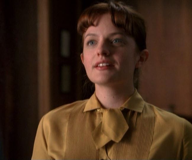 Regardless of what happened after the birth, Peggy has thrown herself full-bore into her new role. She views herself as equal with the other junior execs, even though they don't. She and Don work well together creatively, and you can tell he clicks more with her than he ever has with Paul or Freddy Rumsen. She tries to separate herself from secretarial duties (when Ken asks Peggy about the glasses in the conference room, she avoids answering him) and makes Don's new secretary cry over what was probably an innocent remark.