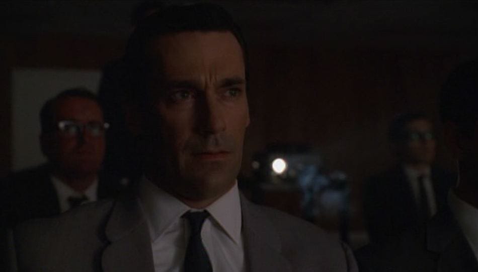 Especially taken back-to-back, "The Inheritance" and "The Jet Set" are the two most unsettling (or, if you're feeling less generous, frustrating) "Mad Men" episodes to date. Last week, we spent most of our time with the show's two most emotionally remote (or, IYFLG, dull) characters in Betty and Pete, while Don was largely a bystander, or simply absent. Tonight, we got a lot of action (by "Mad Men" standards) at the Sterling Cooper offices, but Don spent the hour in a remote location, surrounded by strange people and not acting remotely like the man we know. (That's the point, of course, which I'll be getting to in a minute.)