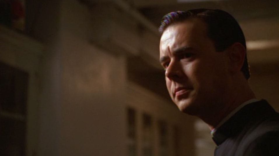 • In what I'm assuming will be Colin Hanks' final appearance, we see that despite his fondness for folk music and unorthodox versions of Grace, Father Gill still believes deeply in Church dogma, to the point where he feels he has to scare Peggy into confessing her sins before the end of the world comes. And after assuming all season that Peggy was agnostic at best -- just went to mass to appease her mother -- we see her cross herself before going to sleep. As she says to Father Gill, she believes in God -- she just doesn't believe that He is as strict and judgmental as Gill kept insisting He would be.