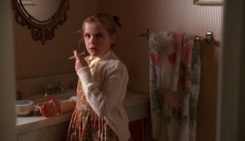 As for Betty, we get both her good and bad sides tonight. Her phone conversation with Sarah Beth confirms my suspicions from "Six Month Leave" that she pushed Sarah Beth and Arthur towards an affair so she could feel morally superior to both of them. (Remember, earlier in that episode, Betty grew frustrated listening to Sarah Beth talk and talk about how kind and understanding her husband was.) That moment where she chides Sarah Beth for going through with her adulterous impulses was as cruel and calculated as anything Livia Soprano might have tried.