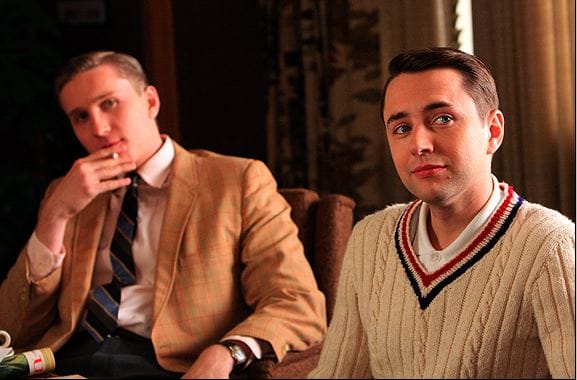 Father Gil's reaction to this news is interesting (and well-played by Colin Hanks). We learn fairly quickly that he's a progressive priest by 1962 standards, more worldly and more open to new ideas, and while he doesn't shun Peggy upon learning about the baby, he does seem more reserved around her in the episode's final scene. I know Hanks is going to do a few more episodes; I just hope Matt Weiner doesn't try to travel the Carmela/Father Phil route and have Peggy fall in love with her local man of the cloth. She does seem to like him, because he's a nice guy who doesn't fit the mold of either her work or family life, but I don't want to see it go further. There's paying homage to your old show, and then there's copying it wholesale.