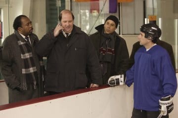 And the episode? More cringe-y than it's been lately, but still great. I watched the rerun of "Health Care" last week because Marian hadn't seen it, and the Michael then vs. the Michael now is a very different animal. The hair and makeup people have him looking better (his hairstyle last year, which you could see in Michael's blow-up birthday card to himself, made it look like he had really bad plugs), and while he's still a self-involved loser, the writers have figured out a way to make him a little more sympathetic without ruining the joke. (Again, "40-Year-Old Virgin" was like a great instruction video for them.) Best moments: anything involving Angela and Dwight, especially Ryan's stunned non-interview in response to that horrific "cookie" discussion; Jim getting Pam into trouble with the supermarket manager; Oscar randomly twirling around on the ice rink; and Michael inevitable wooing his own wife. (Maybe Nancy can give a Golden Globes speech next year that she claims Steve wrote.)