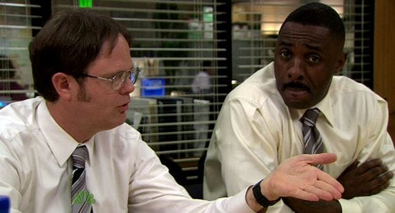 • Jim puts Dwight saying "Idiot" as his ringtone, and is immediately rewarded by Dwight actually calling him an idiot on the phone. ("This is Dwight, by the way.") Not quite up to the level of Tim on British "Office" constantly calling Gareth a (male chicken) repeatedly on his cell phone, but still amusing.