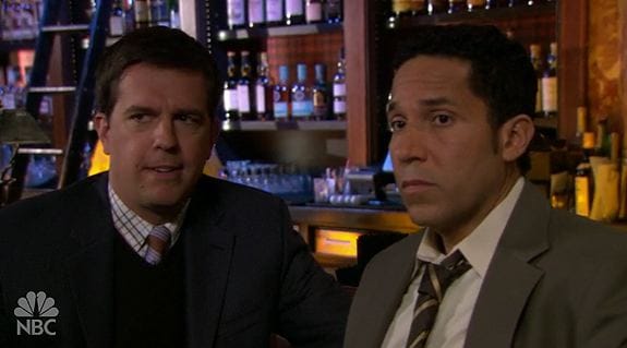 And even though there was a very sad truth at the heart of Andy's story -- he's being cuckolded by an awful woman who will have sex with Dwight but not him -- it gave us the spectacle of Andy and Oscar doing some drunk out-of-office bonding. I'm not sure there's ever been a wronger sentence uttered in that Winnipeg bar than "Beer me dos Long Island iced teas," but it was very Andy, and the whole thing was a nice acknowledgment of the way that co-workers can sometimes discover they like each other a lot more when they're not working at adjacent desks.