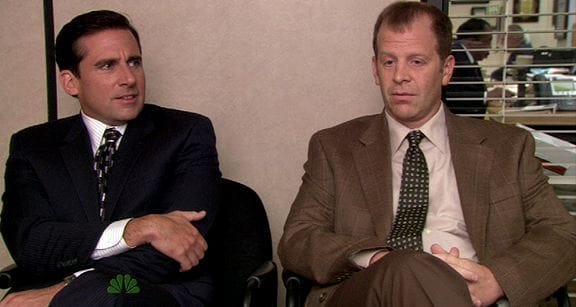 As with tonight's "30 Rock," I was so underwhelmed with the latest episode of "The Office" -- other than Michael's initial reaction to Toby's return and the revelation that Dwight is a fan of "The Shield" -- that I don't have the energy or enthusiasm to write anything more than the generic invitation for you all to comment.