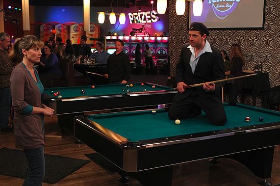 As for Michael Scott as Date Mike? Another mixed bag. I get the joke - that when Michael's not trying to be charming and funny, he actually is charming and funny, and that his belief in himself as a performer always sabotages him - but Date Mike, like Prison Mike and some other alter egos before him, was just so over-the-top that it was painful to watch. And given that Michael was having some success with Pam's friend, and that Jim and Pam wanted to make this fix-up work, and that Michael has on occasion in the past been willing to listen to Jim's advice, I just didn't buy that Jim wouldn't have pulled him aside and been a lot blunter and more forceful about how badly Michael was screwing up what had been going so well only moments earlier. All the Date Mike shenanigans were a build-up to Michael forging a better connection with the bar manager (played by Amy Pietz), but I find less is always much, much more with Michael at his zaniest.