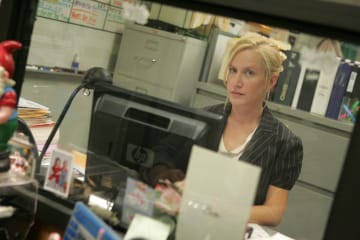 This one wasn't as laugh-out-loud funny as "Traveling Salesmen," but that's because they were going for more of a poignant tone. Everybody's out of sorts in this one. Dwight's working elsewhere, Andy is trying to become Dwight (but is oddly turning into Michael), Michael seems normal in comparison to Andy (his only real bad moment was at the Party Planning Committee meeting), Karen's refusal to play accomplice briefly turns Jim into Tim from British "Office," Angela is (temporarily) human, and the reunion of the Jim/Pam Prank Squad clues Karen into what a terrible mistake she just made.
