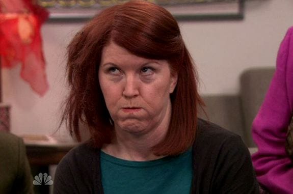 • Kevin's love of nicknaming other people -- and his lack of creativity in same -- goes on as he attempts to dub Meredith "Fire Girl" (in the grand tradition of Ryan as "Fire Guy," and then "Fired Guy," and then "Hired Guy"), only to realize that it might be too soon.