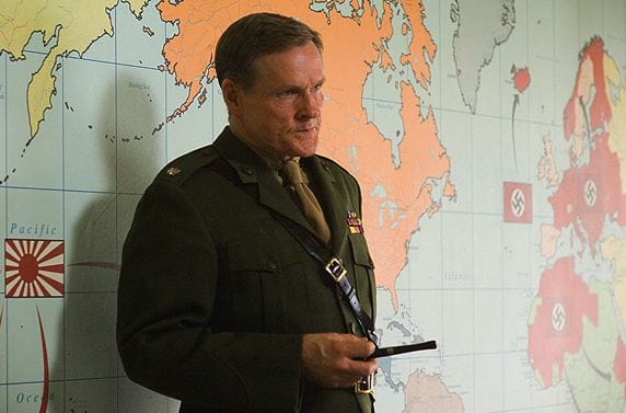 • The miniseries has three leads, but it also has a sort of Very Special Guest star in William Sadler, who goes to town in the role of legendary Marine leader Lewis Burwell "Chesty" Puller. Sadler kicks off the miniseries in fine fashion with a stirring speech to Basilone and the other non-commissioned officers, in which he declares them the backbone of the campaign and looks forward to sailing with them "across God's vast ocean, where we will meet our enemy and kill them all." Another key difference between this and "Band" is the level of esprit de corps that the Marines have, as typified by their uniform love of Chesty, who has no problem bantering with the enlisted men when he gets to Guadalcanal. (The guys in Easy Company loved each other, but weren't crazy about the Army itself.)