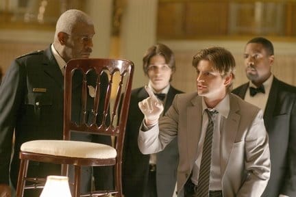 Pluses: Ron Livingston is awesome. He just is. The man was in "Swingers," "Office Space" and "Band of Brothers," and he has a likable Everyguyness that will make me watch him in just about anything. He and DeWitt have nice chemistry. Most of the pilot has the light tone a premise like this needs to work. Glad to see Gina Torres have a regular job again, and to see Cudlitz (who was also in "Band of Brothers") essentially reprising his sniper role from "The Negotiator." (Say it with me: "I want Chris Sabian!")