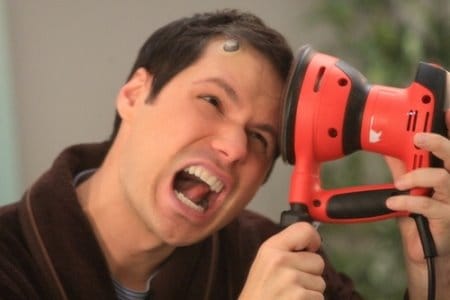 First, I know the photo above wasn't in last night's episode, but A)the CW press site didn't have any pictures for this show, and B)Michael Ian Black trying to sand off his demon horns is a funny image.