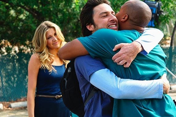 Scrubs is back. Zach Braff and Donald Faison are goofing around. John C. McGinley is rattling off lists of things that Dr. Cox doesn't like. Coldplay's "Clocks" is on the soundtrack. The goal is clear: make it 2003 again, by science or magic.