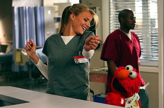 So it was awkward to watch Elliot not realize that Katie was manipulating her when she's known for a while what a little conniver Katie is, or to have Denise react to the Jo nickname like it was the first time she'd heard it. Under different circumstances with regards to time and budget, maybe they'd have had time to fix more than just looping in a few of Sarah Chalke's lines -- maybe Katie convinces Elliot that she's changed, only to backslide again, or Denise points out that she's tiring of the nickname (which still leads into the "I like banging dudes" exchange, which was very funny) -- but I understand why they had to air it. After all, there are only 12 remaining episodes of "Scrubs" ever after this, plus they did go to all that trouble to get the "Sesame Street" Muppets. So it had to air, and the further away we got from the start of the season, the weirder it was going to be.