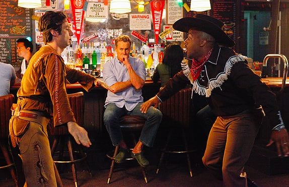 We got more concentrated time with the med students (even if Aussie Supermodel Doc still doesn't have a defining character trait other than being hot and Australian) and Cole managed to not be a complete tool without taking away from what can make the character funny. By confronting JD's age head-on and making his denial of it the point of the JD/Turk story this week, their antics went over much better than they did in the first three episodes(*). And while Ted's goodbye wasn't really necessary - landing Gooch was essentially Sam Lloyd's farewell last season - I'll never object to some Ted/Kelso time.
