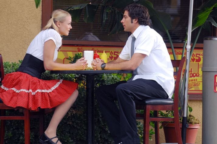 Levi's appealing Everyman quality allows him to convincingly utter lines like "You know, if I had a blog, this would be a really big day for me" after discovering he may have been poisoned to death, and it allows the writers to sometimes get away with forgettable spy heroics. The espionage stories on "Chuck" aren't going to make anyone forsake the Bond or Bourne movies anytime soon, but because Chuck's in the middle of them, they're often besides the point. We just want to see how he's going to respond to being poisoned, or to having to land a helicopter with no training outside of video games, or, tonight, to being in a fake relationship with Sarah when a real girl would date him if she didn't think he had a girlfriend.