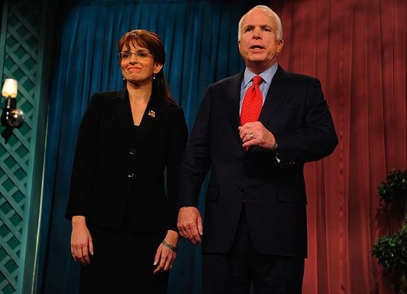 But last night's Affleck/McCain team-up didn't quite live up to expectations. The opening sketch, with a cash-strapped McCain on QVC, trying to counter Barack Obama's network infomercial while selling campaign-themed tchotchkes, was hilarious -- particularly when Tina Fey, in her final appearance as Sarah Palin, went rogue -- but McCain on Weekend Update fell flat.