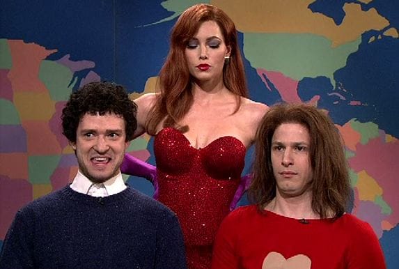 The two best things in Weekend Update unfortunately aren't up. One was Seth Meyers' list of things Iran would have to apologize for before America apologized for "The Wrestler," proving once again that Meyers is often at his best when he's just getting mad. The other was the bit with Andy Samberg as Cathy from the comic strips, and then cameos by Justin Timberlake as Irving and Jessica Biel as Jessica Rabbit. (See, it's funny because they're both named Jessica...) Samberg's Cathy isn't as good as Tina Fey's Cathy ("Chocolate chocolate chocolate! Ack!"), but Timberlake was brilliant as usual, and I can't figure out why this one's not available on-line. (Though if you poke around on YouTube, you might find a version before the NBC legal team goes to work.) Unlike the Timberlake/Beyonce sketch from the Paul Rudd episode, there aren't any music rights issues at work.