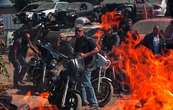 And yet, if I could put my frequent cries of, "Why aren't you thinking it's Zobelle?" aside, "Fa Guan" continued the season's riveting downward spiral for SAMCRO. The series began with the club's gun factory burning to the ground with people inside, and now the porn factory has suffered the same fate, possibly taking Chuck and/or Darby with it. And Jax, consumed with his hatred of Clay, and frustrated that things in the club are getting worse, not better, takes the radical step of deciding to go nomad(**).