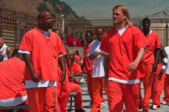 And, as per usual on both "Sons of Anarchy" and "The Shield," things mostly worked out, in that the club guys get bailed out before one of them gets killed. But in the larger picture, matters are more screwed-up than ever: Juice is stabbed (which, as Bobby notes, is only going to add to the mountain of debt that Chibs' hospital stay will bring), Trammell is shot, Stahl is back in the picture, Oswald and Gemma are going to be hard on Clay to keep the club from forfeiting the bail money, and Bobby's plea for "a healing" between Clay and Jax instead leads to that savage brawl that solves exactly nothing.