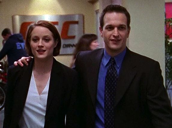 There's a lot of good material for all four key actors(*), and particularly for Felicity Huffman and Josh Charles. Dan definitely plays second fiddle to Casey a lot in this first season, but the character really starts coming into his own in these later episodes, between the relationship with Rebecca (more on that below) and here with his complicated reaction to Casey's secret. Dan would never, under any circumstances, keep this secret from Dana if his and Casey's roles were reversed - but then, he wouldn't have slept with Sally in the first place, and either way, it's not his secret to tell. So he's mad at Casey for what he did and what he won't say, and he's mad at Gordon, and he's mad at himself for valuing his friendship with Casey over his friendship with Dana, and the best he can do is to vent to Rebecca, who has no idea what he's talking about but likes him enough at this point not to care.