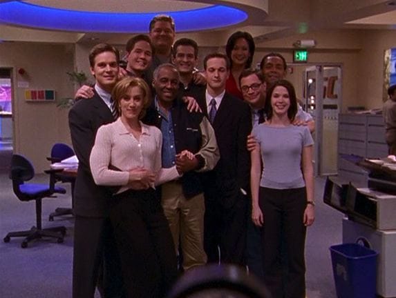 Because I want to get this post done before my life gets insanely busy with fall premieres, Emmys, etc., this may be shorter than a three-episode review might deserve. But I'm okay with it, not only because I think we've all discovered in these reviews that "Sports Night" is a show best not over-analyzed, but because these are less three individual episodes than an multi-episode story arc that closed out that first season. The design isn't perfect - it's unintentionally amusing to watch the end of "Ten Wickets" (where Casey dramatically says he has to come up with a plan) immediately before the start of "Napoleon's Battle Plan" (where Dan is needling Casey for failing to come up with a plan) - but it's more or less one big story here.