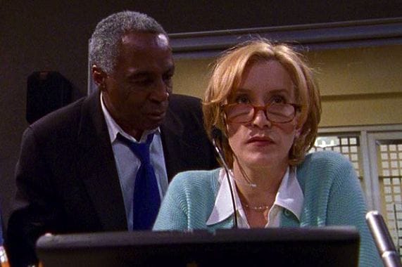 But really, I just feel happy when Dana says the line I quoted at the top. As I've said before, what makes "Sports Night" cool is that it creates this vision of a fantasy workplace where everyone is like family to one another. And more than most episodes of the series, "Thespis" creates the illusion that we're part of the family, sucked into the wacky hijinks and possible darkness, so the feeling of relief when Thespis allegedly attacks Frank and Kathie Lee Gifford across town is palpable.