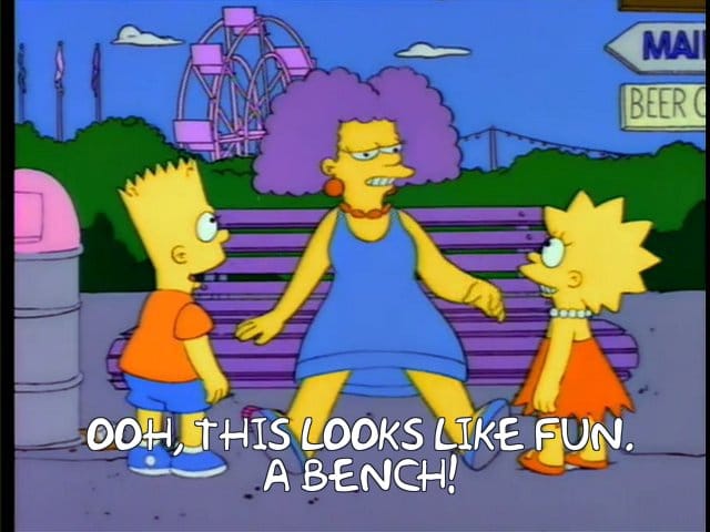 - With all the walking I did each day, I have never had more appreciation for this moment from The Simpsons episode where Aunt Selma takes Bart and Lisa to Duff Gardens: