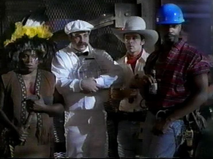 Trevor and Champ team up with three guys from the group -- guitar-playing sports fan Mike, oily lounge guy Nick and diminutive Laurence -- to dress up as a half-assed version of the Village People to attend a meat market at a warehouse called, appropriately, Gomorrah's. (As a reminder of who the regulars on the show are and who are the day players, Trevor gets to be the cop and Champ gets to be the construction worker, while the other three look dorky as the cowboy, the Indian and... a milkman. More on that below.) None of the guys save Trevor wants to be there, and to keep them from playing wallflower or, worse, leaving, he throws some reverse psychology at them, enlisting them in a game to see who can collect the most rejections. As any good relationship guru knows, the hardest part about finding love is just putting yourself out there, and by creating a scenario where the guys not only don't fear rejection, but embrace it, Trevor puts all four of them in situations where they at least have a chance of getting lucky, even though they don't realize that's what he's doing.