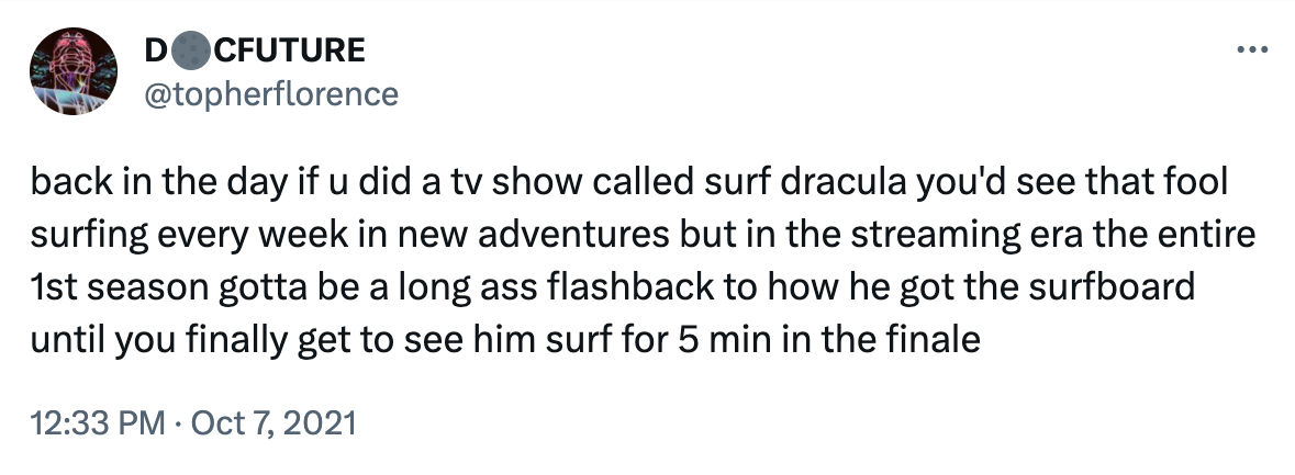 - Meanwhile, It’s Always Sunny in Philadelphia returned for its sixteenth season on Wednesday night. Think about that for a moment. Sixteen seasons, for a live-action comedy, and one that at times is still capable of being as funny as it was way back in its second or third. There have been some bumps in the later years, and I never got around to finishing the Ireland trip from Season Fifteen. But I laughed a bunch at the six episodes I’ve seen so far in the new season. How is it still this good, when most comedies are running on fumes by their fourth or fifth seasons? I talked with Rob McElhenney about this back in 2019, and it largely comes down to the Gang being so awful. As on Seinfeld, there’s no need for hugging or learning, and the push into sentimentality can be tough on a comedy after a few years. More importantly, though, a lot of comedies just feel sad after a while, because what’s funny to watch characters do at one age becomes pathetic as they get older. But the Gang was always pathetic, and the fact that they’re still acting this way in their 40s in many ways makes the joke funnier than when they were in their 20s. I’m glad it’s back.