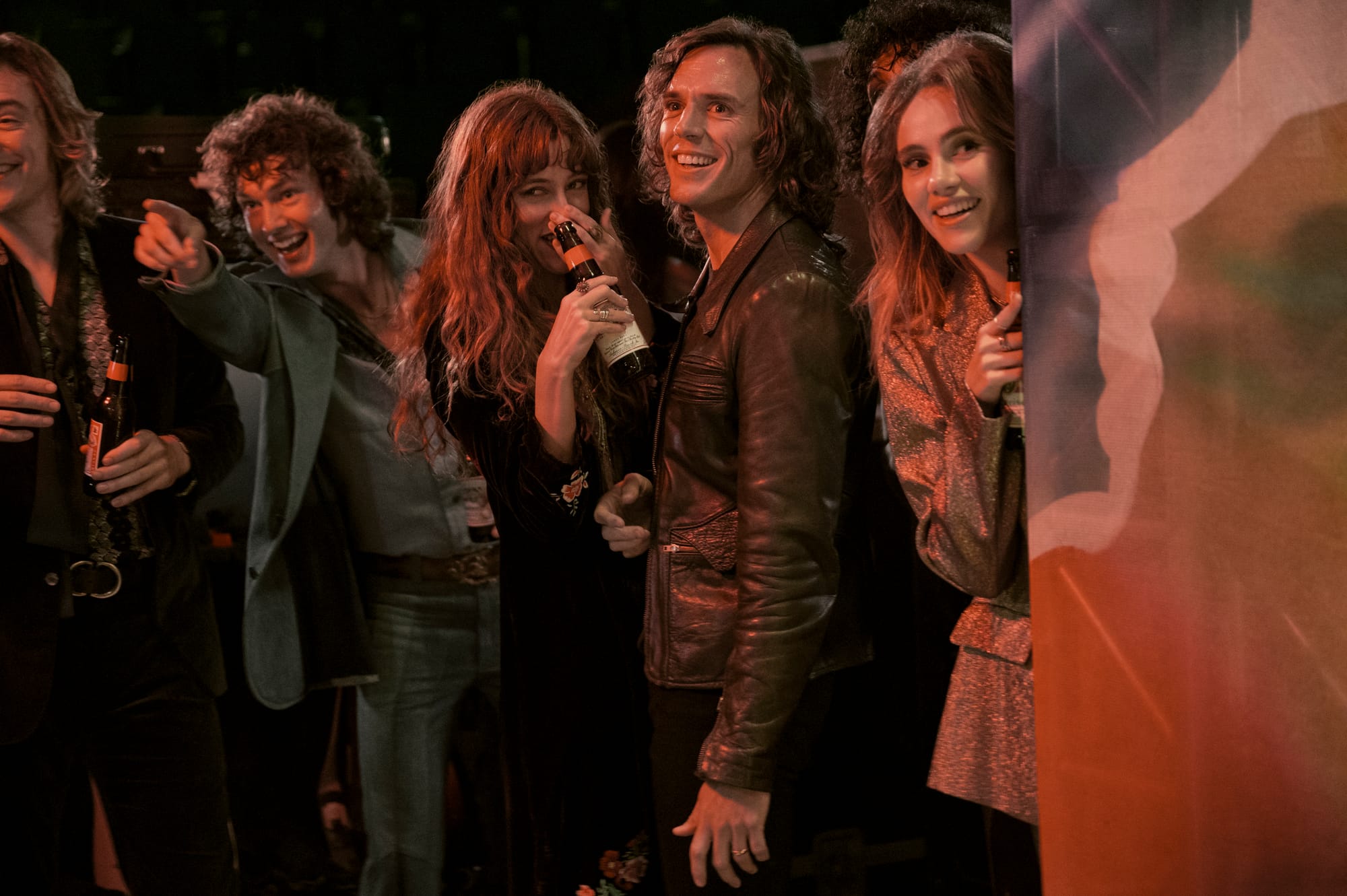 Meanwhile, I understand why the producers relocated the framing device from the present day, nearly 40 years after the band broke up, to only 20. As it is, the wigs and makeup everyone wore in the documentary interview scenes looked ridiculous, and I don’t want to imagine what they would have tried to make Riley Keough or Suki Waterhouse look like they’re in their 60s. But the meaning of the ending changes completely with the shift in age. It’s one thing for Billy and Camilla to have lived a full life together, and for him to then perhaps go see Daisy now that he’s a senior citizen with not a lot of time left on this earth. But if they’re substantially younger, then it just becomes this: