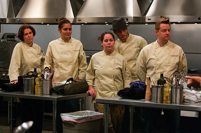 - 7 out of the 12 elimination challenges have involved people working in teams, or at least in pairs. I haven't gone back to previous episodes to break down whether the total was roughly the same, but it's certainly felt like there have been fewer opportunities for the chefs to shine individually than there were, say, last season. Not only has that led to people succeeding or failing based on the work of others (again, see Dale getting knifed because he was executive chef on a lousy team), but it's prevented the chefs from really standing out on their own. I get that Stephanie's clearly been one of the best chefs, for instance, but I really have no sense of what kind of food she likes to make.
