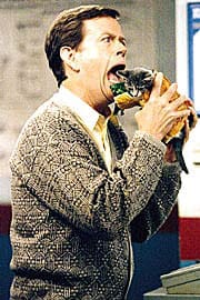 It's a memorable premise, but one that might play better in animation. Scully used to run "The Simpsons," and like other "Simpsons" alums, he's still figuring out what's funny when it happens to a cartoon character versus what's funny when a flesh-and-blood person does it. It's easy to imagine laughing at Homer and Marge turning into frenzied, lustful werewolves, but when it happens to Bob and Liz, it's uncomfortable.