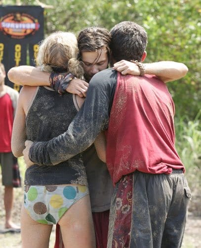 All that said, I was really enjoying the episode up until Austin got the boot. This is the most pre-vote scrambling I think we've ever seen, and while it was a dumb plan, it seemed like Bruce and Danielle were both seriously considering it. Couple that with Austin and Terry's knowing smiles to each other at TC, and I thought for sure they had pulled it off -- or, at least, that they were smart enough to have Austin holding the Idol. Beyond that, I liked Terry's reveal of the Idol to Sally, because you could tell he had been dying to brag about it to someone ever since he found the damn thing. ("I found it in, like, 20 minutes! Now kneel before my mighty awesomeness!") I liked seeing Aras "rewarded" with breakfast in the wettest bed of all time, and I liked both challenges.