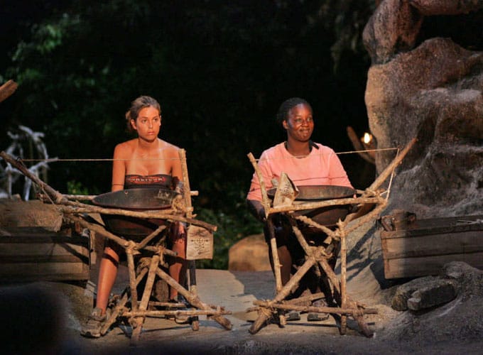 "Survivor," the penultimate episode. The last time the show did a two-hour finale with just the final three, it was way back in Australia, and even Mark Burnett seemed ashamed of the amount of padding. So I was surprised, when I looked at the schedule, to realize this would be happening again. And so what's their solution to make the finale less painful this time? End the previous episode with a lame cliffhanger! Woo-hoo! The resolution of the fire-starting challenge (which really needs to be replaced by something more, you know, interesting) should take up, what, five minutes of time on Sunday? Yeah, that'll make the rest of the two hours just sail on by!